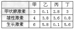 据表分析:乙、丙、丁分别被切除的内分泌腺依次是
