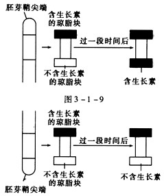 4、选择题 如图是对燕麦胚芽鞘的有关研究,请你仔细分析如图所示的实验过程和结果,可以得到的结论是