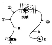 (1)用电刺激E,结果A发生运动反应;用电刺激B,结果A反应而E无反应。这表明图中的A是________,E是________,而B和D分别是_________和_________。