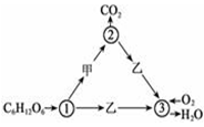 3、选择题 右图为细胞呼吸过程示意图,其中①②③代表有关生理过程发生的场所,甲、乙代表有关物质。下列叙述正确的是