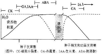 (2)种子发育过程中,首先出现的激素是CK,其主要作用是________;其次增加的激素是GA和IAA,参与有机物向籽粒的运输与积累。ABA促进种子贮藏蛋白的基因表达,并促进种子的脱水干燥,有利于种子的_________。可见植物生长发育过程中激素调节的特点是______________。
