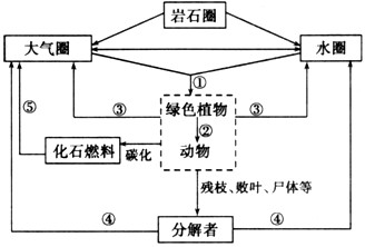 (3)煤是“高碳”能源,通过燃烧,碳主要以________的形式进入大气圈。根据上图,实现“低碳”承诺、减少温室效应可通过减小图中的_________(填数字序号)。