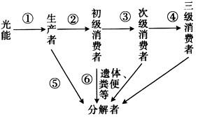 3、选择题 下图为生态系统中能量流动情况示意图,①②③④⑤⑥各代表一定能量,下列有关叙述正确的是