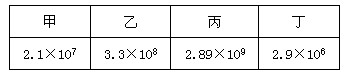 5、选择题 某生态系统中有甲、乙、丙、丁4个营养级,一年内流经这4个营养级的能量数值如下表:(J/m2)该生态系统中属于生产者的是