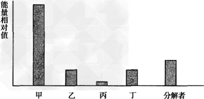 (2)下图表示一个相对稳定的生态系统中四个种群和分解者的能量相对值。请绘制由甲、乙、丙、丁四个种群形成的食物网简图。
