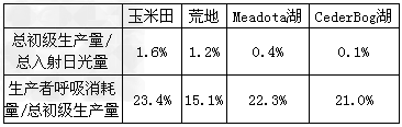 (1)四个生态系统中,光能利用效率最高的是_______,总初级生产量转化为净初级生产量的比值最高的生态系统是__________。