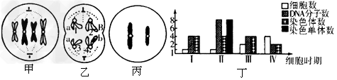 (1)图甲所示分裂时期对应于图丁的_____阶段。图丁的Ⅲ阶段对应于图______细胞,此细胞中含有____个染色体组。