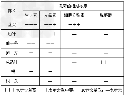 (1)植物激素对植物的生长发育产生显著调节作用,植物的生长发育是由多种激素相互协调、共同调节的。下表是植物不同部位各种激素的相对浓度,请分析回答:
