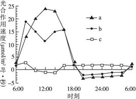 3、选择题 下图表示三种植物叶片光合作用速度的日变化,从图中结果推测,三种植物叶片一天内有机物积累量多少的顺序是