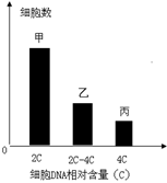 4、选择题 细胞分裂过程中DNA含量会发生变化。通过测定一定数量细胞的DNA含量,可分析其细胞周期。根据细胞DNA含量不同,将某种动物曲细精管中的细胞分为三组。从图中所示结果分析其细胞周期,正确的是