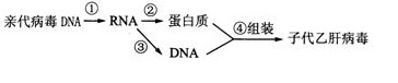 4、选择题 乙肝病毒是一种约由3200个脱氧核苷酸组成的双链DNA病毒,这种病毒的复制方式比较特殊,简要过程如下图所示。以下相关分析合理的是
