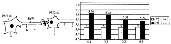 (3)科研人员要探究神经组织内乙酰胆碱对信息传递的速率有无影响,实验人员在除去原有突触小泡的前提下,自a处注入不同浓度的Ach,b处给予恒定刺激,c、d处分别为兴奋感应时间测量点。实验结果如下: