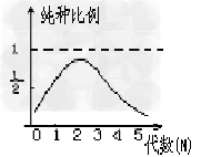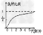 1、选择题 若让某杂合体连续自交,那么能表示自交代数和纯合体比例关系的是