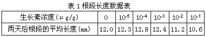 (1)实验结果:如表1所示,根据表内数据在相应位置上绘制在不同浓度的生长素溶液中,根段长度增长率的曲线图。