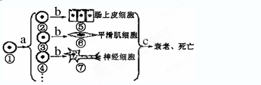 1、选择题 下图为人体某细胞所经历的各个阶段示意图,图中①~⑦为不同的细胞,a~c表示细胞所进行的生理过程。据图分析,下列叙述正确的是