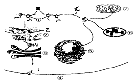 2、连线题 下图表示细胞内蛋白质合成后的去向和定位,其中①~⑦表示细胞结构,甲~丁表示结构中的物质。请据图回答: