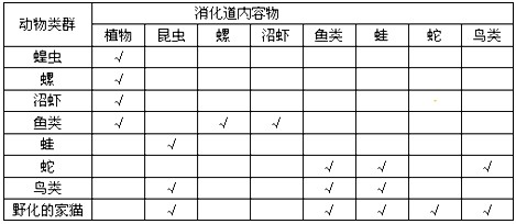3、填空题 圆明园遗址公园是距北京市中心最近的、较为完善的湿地生态景观。这里生存着多种多样的沉水植物(多种水草)、挺水植物(荷、菖蒲、芦苇等)和陆生植物。还生活着以蝗虫为主的多种昆虫。水中有螺、沼虾、鱼类。此外还有蛙、蛇、鹭、野鸭以及野化的家猫等动物。回答以下问题: