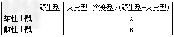 (2)观察统计:观察并将子代雌雄小鼠中野生型和突变型的数量填入下表。
