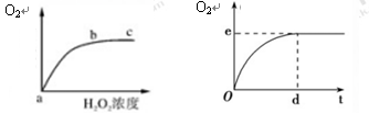 3、选择题 下面两图分别表示在最适温度和PH条件下,过氧化氢的酶促反应随H2O2浓度和时间变化产生的O2量变化曲线,有关的说法正确的是: