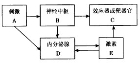 (1)若此图表示体温调节过程,A为寒冷刺激,则B为____,E为甲状腺激素和_________。