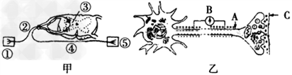 (2)图乙中的C是下一个神经元的_________;兴奋不能从C传到A的原因是________。