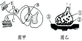 5、连线题 下图甲、乙分别是一个反射弧及其部分结构放大模式图,回答下列问题: