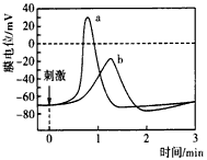 4、选择题 如图表示枪乌贼离体神经纤维在Na+浓度不同的两种海水中受刺激后的膜电位变化情况。下列描述错误的是