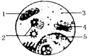 ①此细胞是真核细胞而不可能是原核细胞 ②此细胞是动物细胞而不可能是植物细胞 ③结构2含磷脂,其复制发生在间期 ④结构1、3、5能发生碱基互补配对