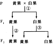 4、选择题 南瓜果实的颜色是由一对等位基因(A和a)控制的,用一株黄果南瓜和一株白果南瓜杂交,F1中既有黄果南瓜也有白果南瓜,F2自交产生的F2的表现型如下图所示,根据图示分析,下列说法错误的是