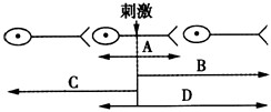 3、选择题 如图的神经纤维上有A、B、C、D四个点,且AB=BC=CD,现将一个电流计连接到神经纤维细胞膜表面:①AB,②BD,③AD之间,若在C处给一强刺激,其中电流计指针能够发生两次相反方向偏转的有: