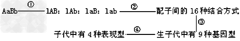 5、选择题 下图表示基因型为AaBb的生物自交产生后代的过程。基因重组发生于