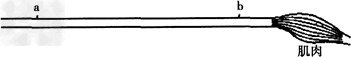 2、选择题 取新鲜的神经—肌肉标本(实验期间用生理盐水湿润标本),按下面的实验装置图,若在a、b两点同时给予刺激,产生两个同等强度的神经冲动,则