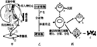 (3)图丙表示人体免疫的某一过程,若抗原再次进入人体内,不能被细胞a、b、c中____________细胞特异性识别;如果图中所示的抗原为酿脓链球菌,当人体产生抗体消灭该菌时,也会攻击心脏瓣膜细胞,导致风湿性心脏病,这属于免疫失调中的_____________________病。