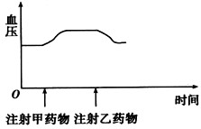 材料与用具:一组正常成年实验兔、血压测定仪、适宜浓度的甲药物、适宜浓度的乙药物、注射器等。(要求:答题时对该组实验兔不再分组;对动物的手术过程与药物的具体注射剂量不作要求)
