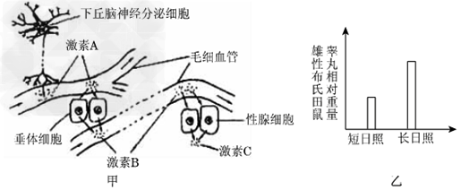 (1)在图甲所示激素间的调节过程中,如果激素C含量减少,会导致血浆中? ,此调节方式属于反馈调节。
