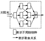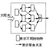 5、选择题 在下列四个生态系统中,绿色植物所固定的太阳能相等。如果物种甲是人类所需的资源,那么能提供甲最多的生态系统是