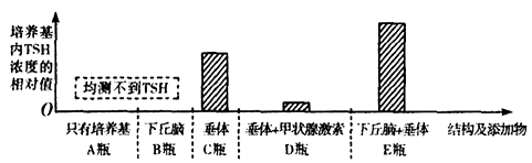 (4)为研究影响促甲状腺激素(TSH)分泌的因素,研究者从刚宰杀的大白鼠体内分离出新鲜的下丘脑和垂体,然后将这些结构单独或一起培养于含有或不含有甲状腺激素的培养基中,培养后测定培养基内TSH的浓度,结果如下: