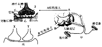 (3)假如图丙中的Y来自图甲中的A,图丙中的X来自大脑皮层,当感受器接受一个刺激后,导致效应器产生反应,则Y释放的物质对突触后膜具有_______作用,如果大脑皮层发出的指令对这个刺激不作出反应,则X释放的物质对突触后膜具有_______作用。