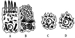 (3)与所有上皮细胞一样,呼吸道上皮细胞也不断衰老、脱落,并被底部向上推进的新细胞所代替,图中C、D细胞位于A、B的底部且无突出特征,它们均属于未分化的细胞,其中________(填字母)细胞可能分化为纤毛细胞,细胞分化的根本原因是_______________。