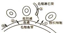 5、选择题 血液、组织液、淋巴三者关系示意图如右,指出图中哪个箭头及其表示的物质或结构是错误的