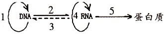 3、选择题 下图是中心法则示意图,各个数字代表不同的过程,有关叙述不正确的是