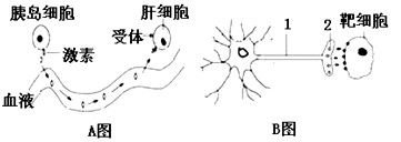 C.如果B图所示的靶细胞为人体唾液腺细胞,那么1应该属于传入神经,靶细胞属于效应器