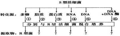①R型活菌 ②加热杀死的R型菌+S型活菌 ③S型活菌 ④加热杀死的S型菌+R型活菌 ⑤用DNA酶处理S型菌的DNA+R型活菌 ⑥S型菌的蛋白质+R型活菌