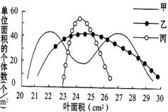 本题解析:试题分析:因为丙种植物在相同个体数量的时候叶面积最小,干旱时植物的生存与它水分的蒸发关系很大,叶面积越小蒸发越少,叶面积大蒸发就多,就容易失水死亡,这里最简单的方法是你计算它们个体数和叶面积比,比例越大越易存活;所以B选项正确。