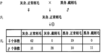 Ⅰ.若果蝇的一对等位基因A、a控制体色,B、b控制翅的刚毛,两对基因位于不同的同源染色体上。将纯合的两种果蝇先后进行如图杂交:
