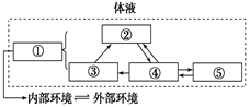 2、选择题 下列为人体体液相关组成及各成分间的关系示意图,图中①~⑤代表的成分正确的是