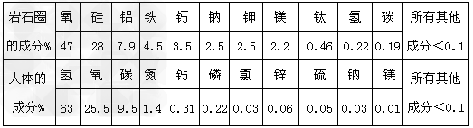 2、填空题 下表中各元素的数据代表该元素占原子总量的百分比,请据表回答问题: