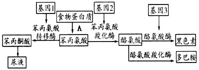 4、连线题 人类白化病和苯丙酮尿症是代谢异常引起的疾病。白化病患者皮肤缺乏黑色素;苯丙酮尿症患者体内的苯丙酮酸大量从尿液中排出。下图表示苯丙氨酸在人体内的代谢,该病受一对等位基因R、r控制。请据图回答有关问题:
