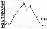 D.a点时植物光合作用吸收的CO2量可能与e点时不同