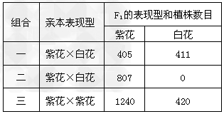 (2)请写出组合一亲本基因型:紫花×白花__________。